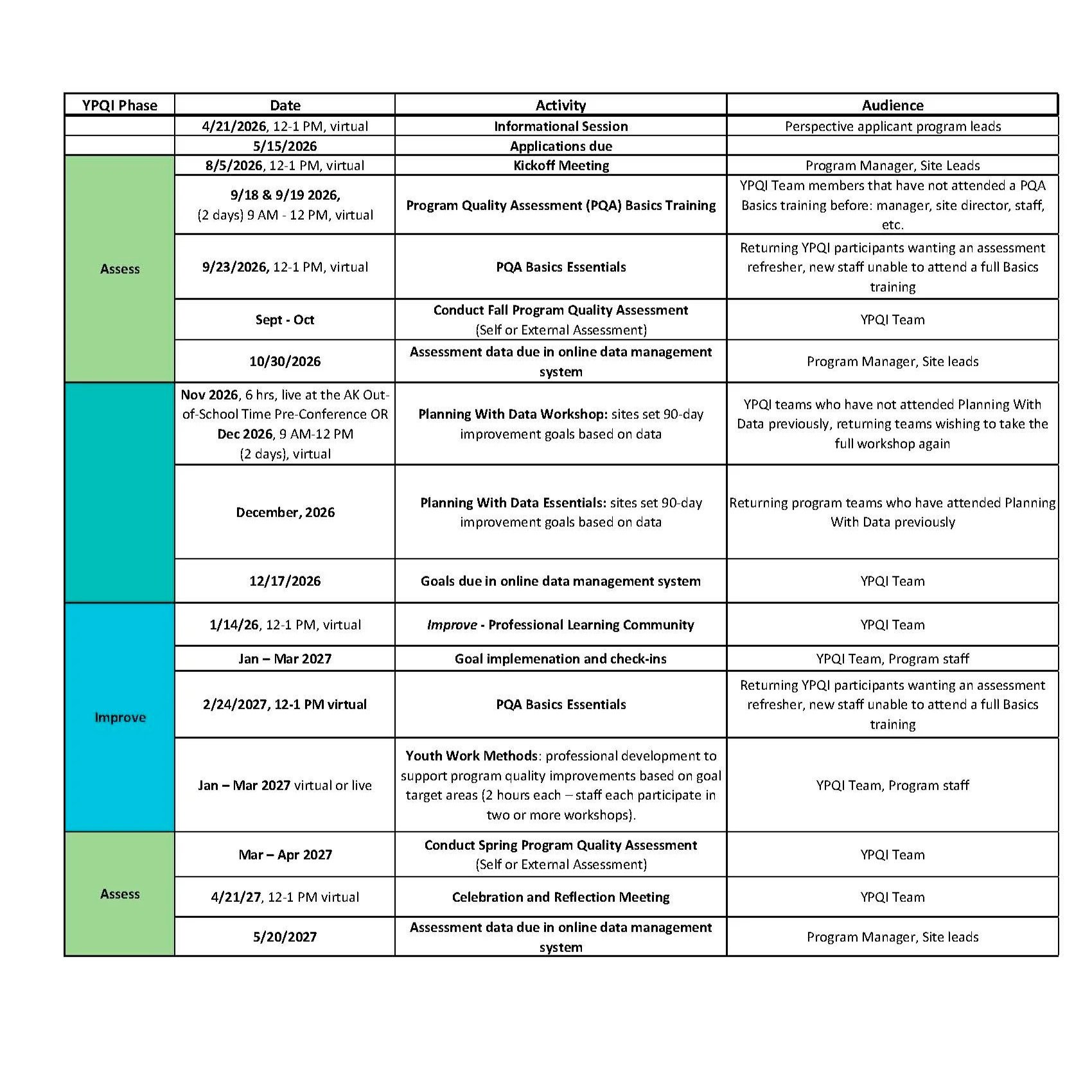 2026-2027 YPQI Schedule